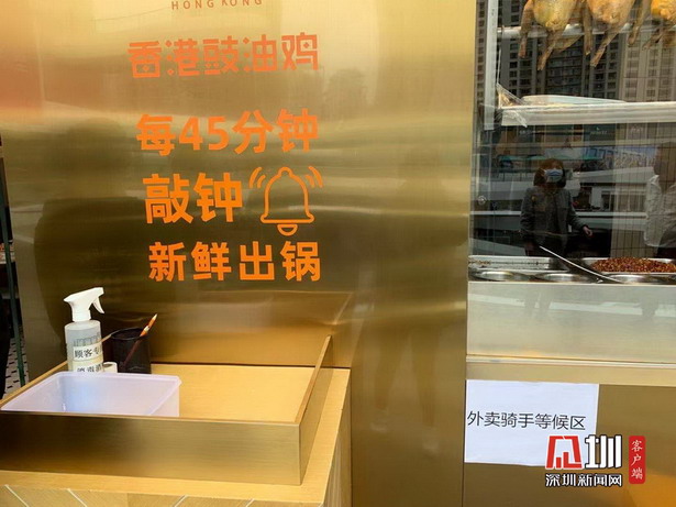 根據(jù)相關(guān)規(guī)定,兩家餐廳門口均設(shè)立預(yù)防區(qū)及外賣騎手區(qū),餐廳配備了體溫測試儀及消毒酒精,每位到店的顧客或騎手均需進行體溫檢測及消毒,特別是金戈戈豉油雞餐廳更為市民配備了口罩。