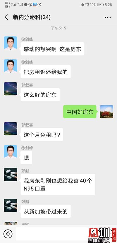 2日上午,寶安中醫(yī)院(集團(tuán))隔離病房工作的徐醫(yī)生,遇到了令他十分感動(dòng)的事。他通過(guò)微信向房東交房租,房東問(wèn)他是不是在防控前線工作,徐醫(yī)生以為房東怕傳染而嫌棄他,連忙向房東解釋自己做好了防護(hù)消毒,不用擔(dān)心,沒(méi)想到房東直接把房租退了回去,表示要支持徐醫(yī)生在前線工作,真是暖心啊!