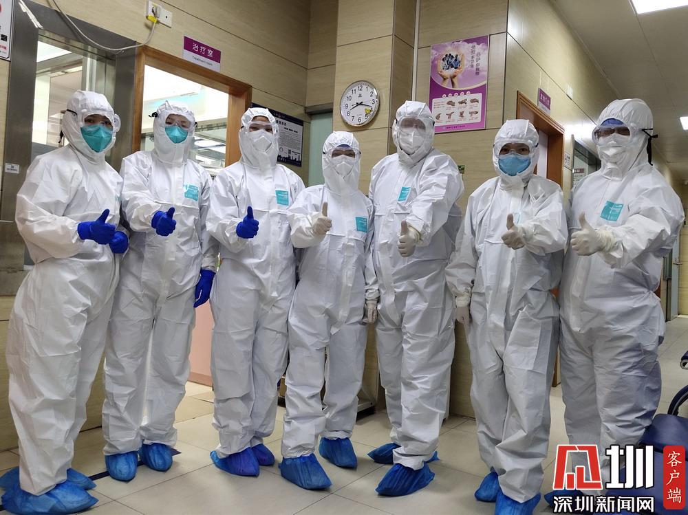 發(fā)熱門診工作人員相互鼓勵(lì)。