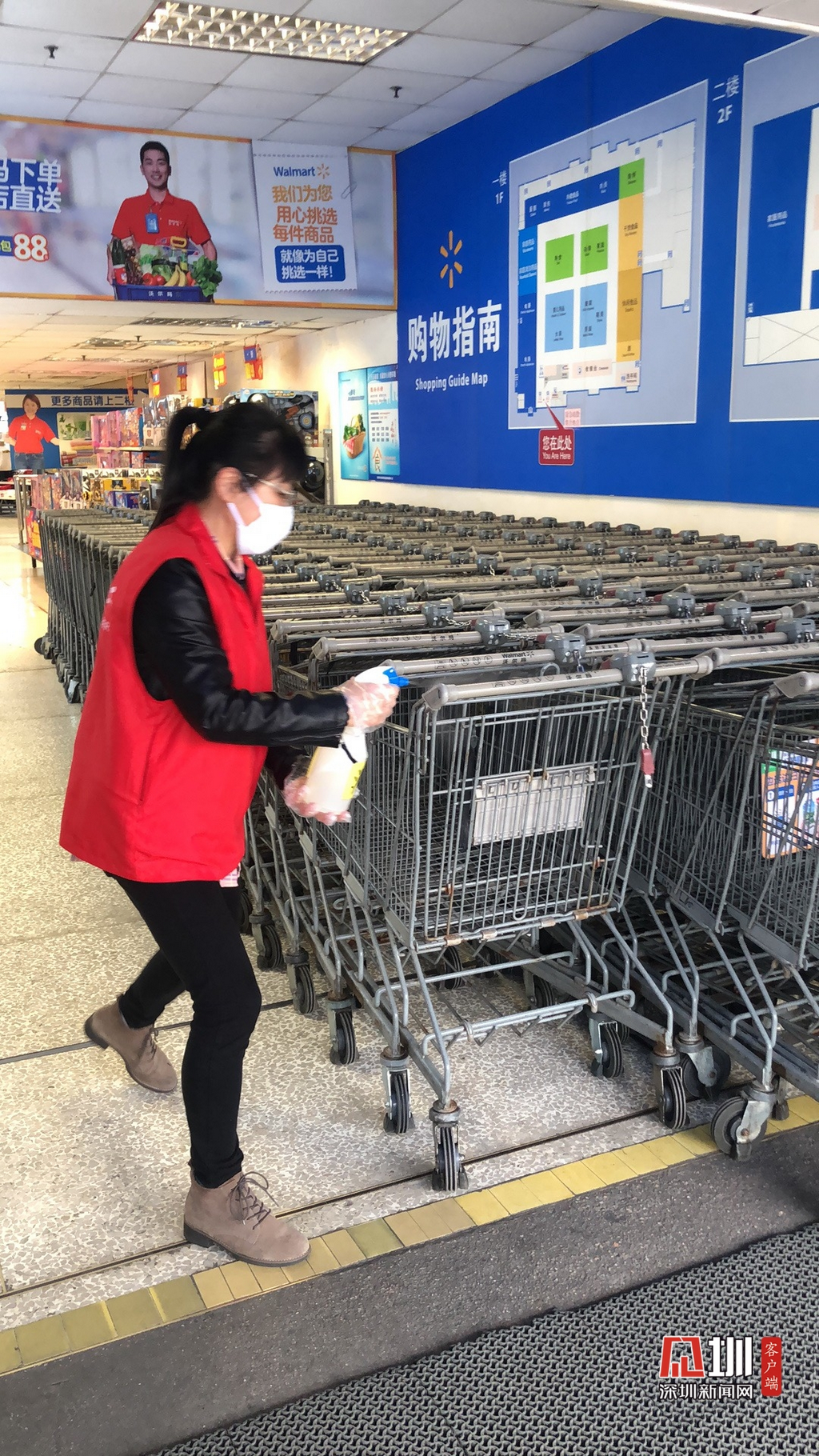 在消毒方面,景田北沃爾瑪超市每天對(duì)超市進(jìn)行高頻次消毒,包括購物車、按鍵、門把手、出入口等人群經(jīng)常接觸的區(qū)域,并保持場(chǎng)所通風(fēng),增加空氣對(duì)流。