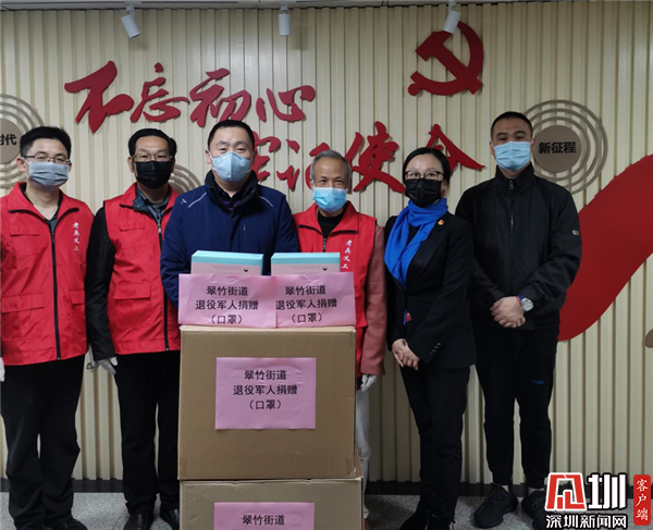 2月6日上午,一批價值2萬多元的口罩送到深圳市羅湖區(qū)翠竹街道辦事處,原來,這是退役軍人代表林貞輝、鄒強杰送來的防護物資?!霸诋斍胺雷o物資緊缺的情況下,感謝你們對街道防疫一線工作的援助和支持,退役軍人‘退伍不褪色’的精神令人敬佩?!苯值傈h工委書記袁亮向他們表達感謝。