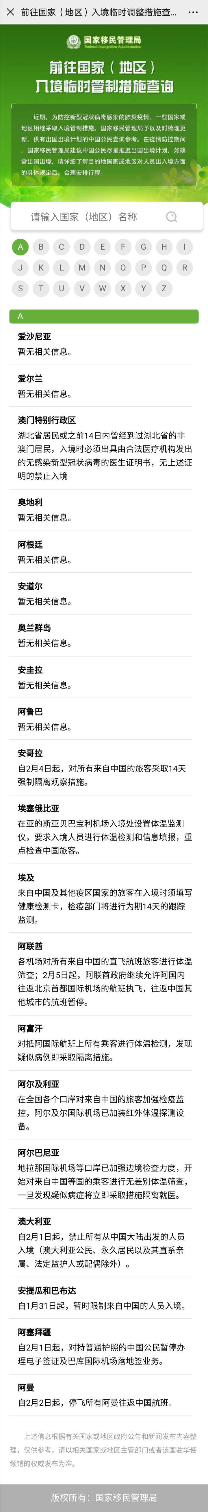 見圳客戶端·深圳新聞網(wǎng)2020年2月7日訊(見圳客戶端、深圳新聞網(wǎng)記者 余俐潔 通訊員 徐周兵)2月7日,國家移民管理局正式推出“出入境信息一鍵通”,提供一些國家和地區(qū)的入境管制措施查詢服務(wù)。市民只要打開支付寶,進(jìn)入城市服務(wù)或搜索“移民局”進(jìn)入小程序即可。