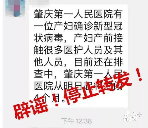“肇慶第一人民醫(yī)院有孕婦確診,產(chǎn)前接觸很多醫(yī)護(hù)人員?,F(xiàn)在要隔離183人,封閉醫(yī)院四個月?!苯眨貞c的微信群中,這條謠言瘋傳,引發(fā)市民恐慌,不敢去醫(yī)院就醫(yī)。