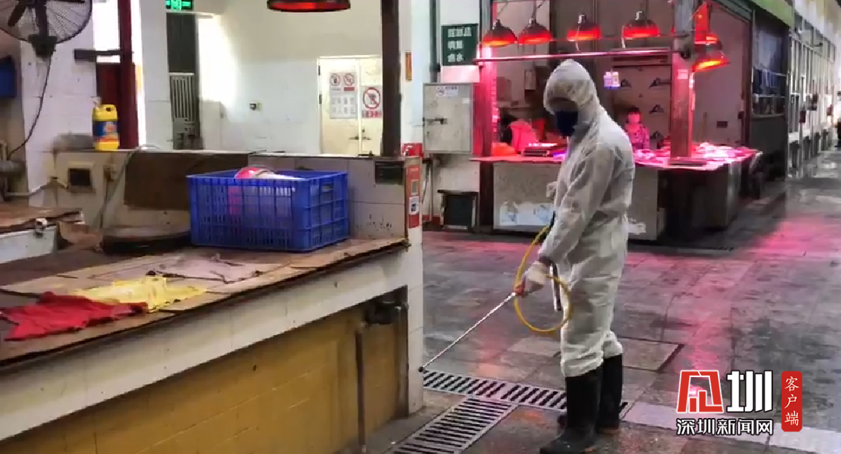 在現(xiàn)場,記者看到有2名消殺工作人員正在對市場的下水道進行消殺清潔?!澳壳皠訖z所負責(zé)福田區(qū)31個農(nóng)批市場的消殺工作,我們從1月22號就開始對農(nóng)貿(mào)市場進行消毒,每天消殺一次,消殺的濃度比之前有所增加,比平時多了一倍。消殺清潔工作對于疫情防控非常重要,效果也非常明顯?!眲訖z所工作人員說道。