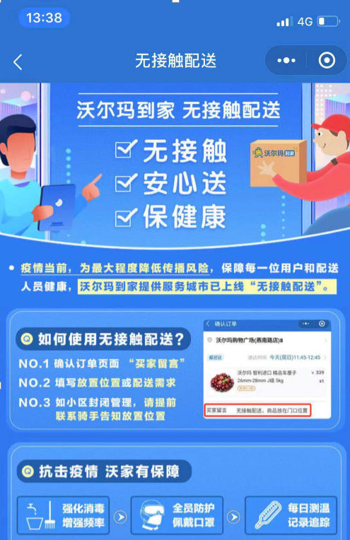 1、下單時(shí)備注選擇“無接觸配送服務(wù)”,盡量避免面對(duì)面接觸。