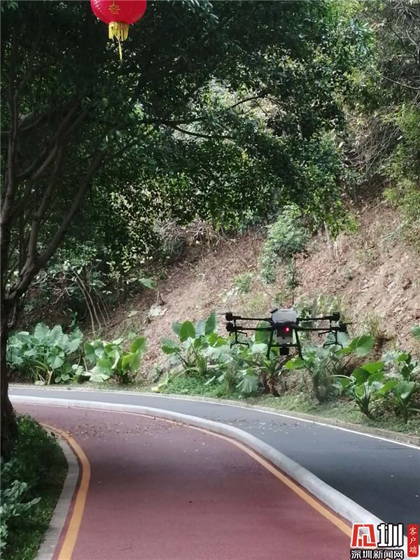 羅湖:多架無人機(jī)對(duì)淘金山綠道進(jìn)行全面消毒