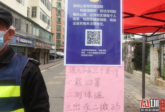 在沙頭角保稅區(qū)第一生活區(qū)原為開(kāi)放式小區(qū),記者發(fā)現(xiàn),疫情期間,該小區(qū)只保留一個(gè)出入口,并在出入口設(shè)置了疫情監(jiān)測(cè)點(diǎn),并明確張貼了標(biāo)有進(jìn)出小區(qū)條件的宣傳語(yǔ):戴口罩、測(cè)體溫、出示二維碼。記者向執(zhí)勤人員表示:“我不在這個(gè)小區(qū)居住,但需要到超市買(mǎi)點(diǎn)東西,可以進(jìn)嗎?”執(zhí)勤人員告訴記者,只要戴好口罩,體溫監(jiān)測(cè)正常,出示登記過(guò)身份的二維碼就可以進(jìn)去。