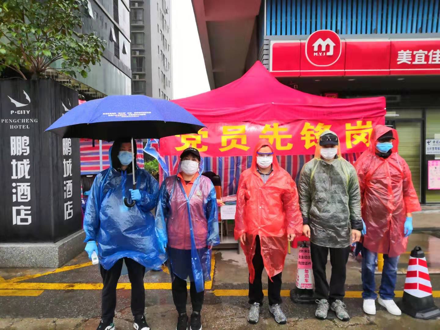 在龍華區(qū)福城街道茜坑社區(qū)的黨員先鋒崗上,工作人員和志愿者只有一襲最簡(jiǎn)單的一次性雨衣,卻依然堅(jiān)守在崗位上。(見(jiàn)圳客戶端、深圳新聞網(wǎng)記者沈婷)