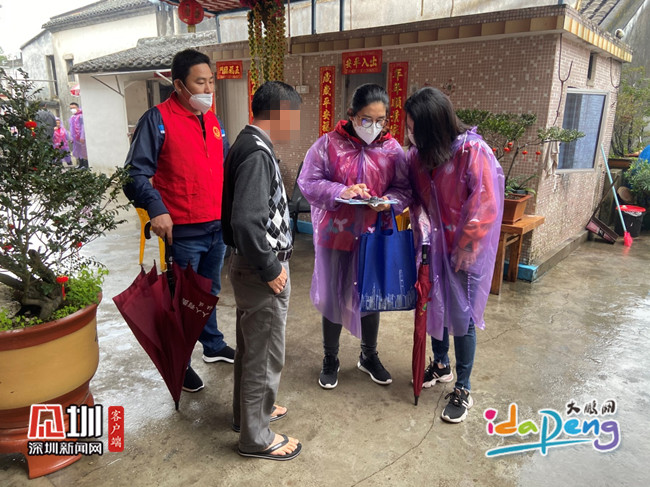 李妙茹(右二)正在西洋尾居民小組開展防疫排查工作