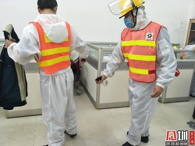 2月14日上午10時(shí)15分,與往常一樣,身著白色防護(hù)服、頭戴安全帽和護(hù)目鏡的簡(jiǎn)朋生帶著清疏隊(duì)到達(dá)轄區(qū)金融路截污點(diǎn),迅速進(jìn)入工作狀態(tài)。他領(lǐng)著隊(duì)員打開(kāi)檢查井井蓋,俯身查看井內(nèi)淤堵情況。發(fā)現(xiàn)存在輕微堵塞后,他立即指導(dǎo)隊(duì)員用高壓水槍進(jìn)行疏通?!八畼屧偻镆稽c(diǎn)!”“往左邊來(lái)一點(diǎn)!”在簡(jiǎn)朋生的指揮下,10分鐘左右,管道終于完成疏通,幾個(gè)人再次合力蓋上井蓋,并對(duì)地面和車(chē)身進(jìn)行噴灑消毒。隨后,清疏隊(duì)又分別趕往公園路截污點(diǎn)與東和路截污點(diǎn)進(jìn)行雨污分流檢查。上午工作結(jié)束后,回到辦公室的隊(duì)員們第一件事就是往身上噴灑消毒藥水?!胺浅r(shí)期,個(gè)人安全防護(hù)也很重要?!焙?jiǎn)朋生說(shuō)。