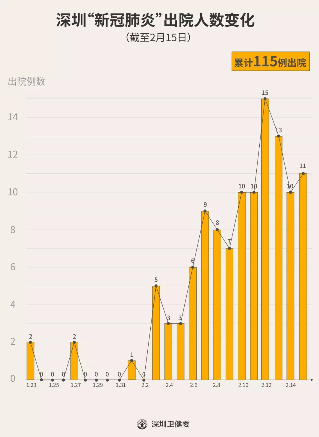 2月15日下午,經(jīng)專(zhuān)家組會(huì)診,深圳再有11名新型冠狀病毒肺炎確診患者出院,累計(jì)達(dá)115人。