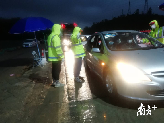 龍崗區(qū)坪地街道黨員干部和工作人員深夜冒雨開展疫情檢查。↓↓↓
