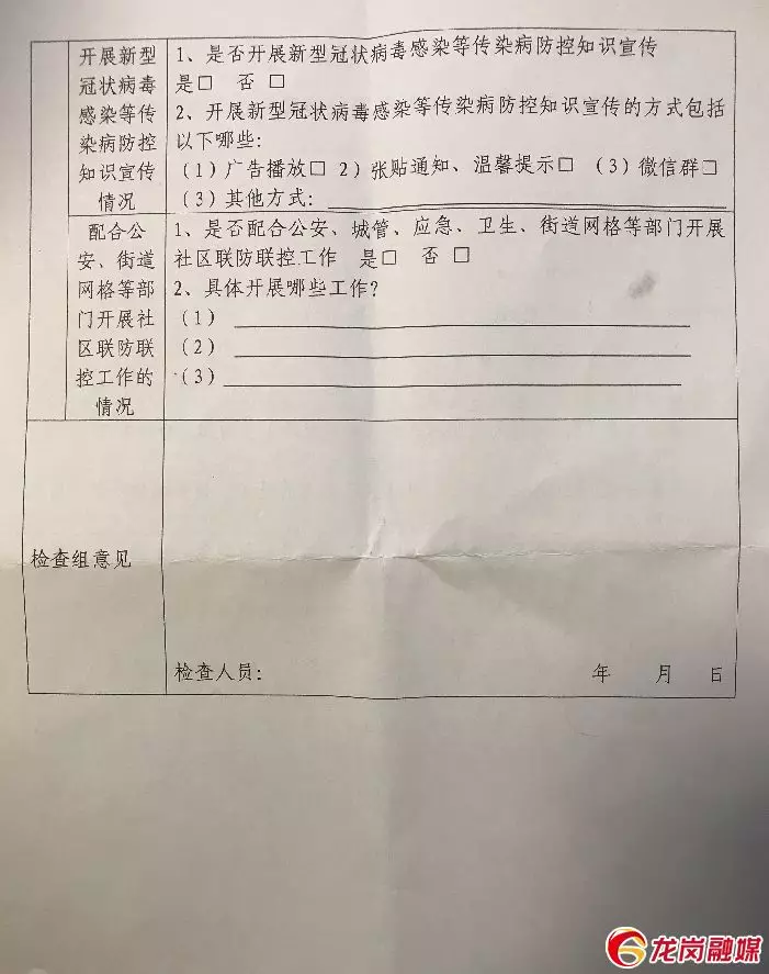 A:區(qū)住建局11組檢查人員都手握一張《龍崗區(qū)物業(yè)服務(wù)企業(yè)新型冠狀病毒防控工作檢查表》,其中按照“物業(yè)服務(wù)企業(yè)對企業(yè)從業(yè)人員的疫情防控情況”“口罩、手套等一次性衛(wèi)生用品專用垃圾桶的設(shè)置情況”“物業(yè)服務(wù)企業(yè)防疫責(zé)任落實(shí)情況”“開展新型冠狀病毒感染等傳染病防控知識宣傳情況”“配合公安、街道網(wǎng)格等部門開展社區(qū)聯(lián)防聯(lián)控工作情況”等五大類17條檢查內(nèi)容展開檢查,視情況評定“紅榜”或“黑榜”。