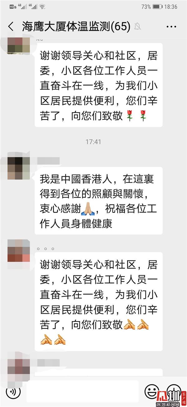 深圳新聞網(wǎng)訊(見(jiàn)圳客戶端、深圳新聞網(wǎng)記者 李慧 實(shí)習(xí)生 覃鈺清 )“待到疫情結(jié)束,我們還要一起靜候春暖花開(kāi)?!备綦x14天,沒(méi)有人將愛(ài)推向門外,卻讓溫暖和陪伴一直蔓延,銘記在彼此心中。冬日嚴(yán)寒,人心卻暖,疫情嚴(yán)峻,服務(wù)保障讓人倍感安心。