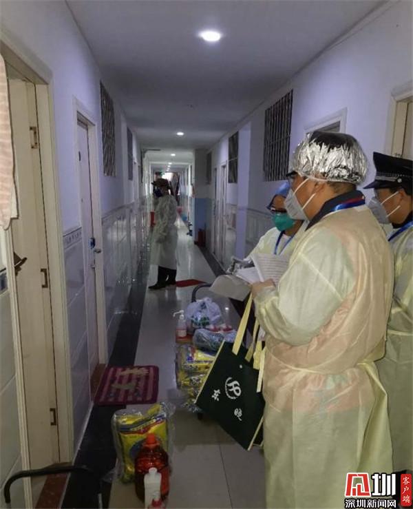 2月16日,工作人員上門慰問居民并給他們分發(fā)消殺用品和生活用品。