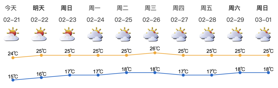 未來三天晴天間多云,氣溫回升。