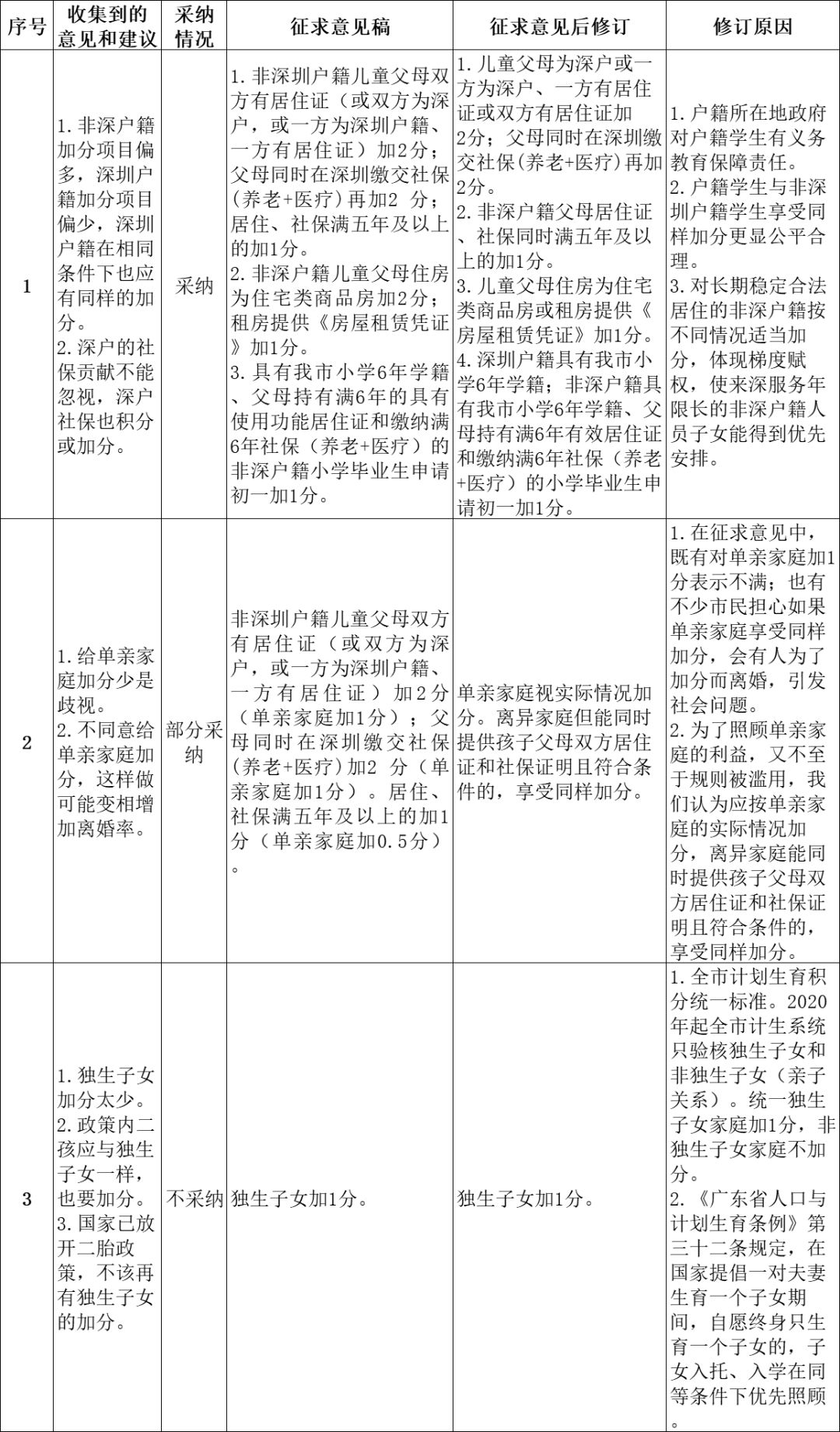 據(jù)了解,1月13日-24日,《羅湖區(qū)義務(wù)教育學(xué)位申請(qǐng)分類和積分辦法(征求意見稿)》在“羅湖政府在線”和“羅湖教育應(yīng)用網(wǎng)”公開征求公眾意見期間,共計(jì)收集市民意見和建議共205條。其中郵件106封,信函2件,電話97個(gè)。經(jīng)過(guò)梳理,區(qū)教育局將比較具有普遍性、代表性的意見和建議進(jìn)行了研究分析,對(duì)合理化意見和建議予以采納。