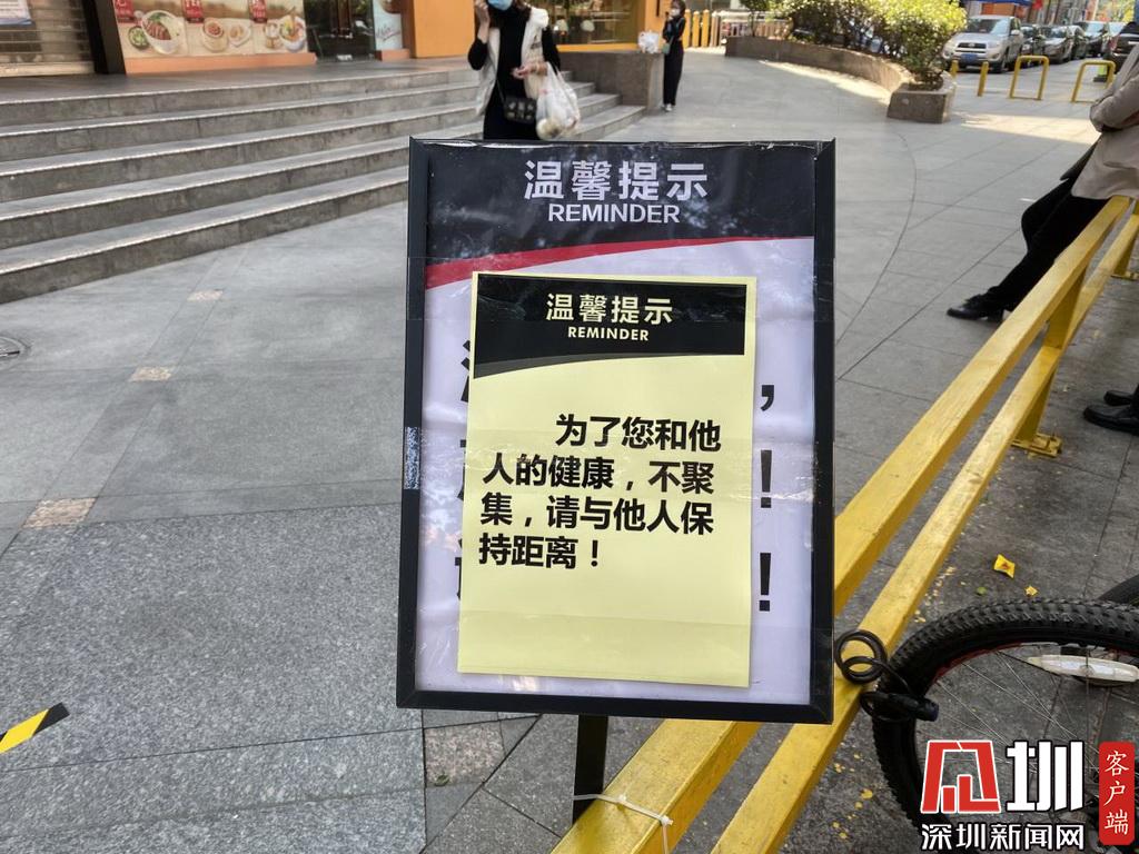 “溫馨提示:為了您和他人的健康,不聚集,請與他人保持距離!”21日,記者來到該商場,過往的顧客寥寥無幾。在入口階梯處,寫有溫馨提示的字牌立于路旁。在入口排隊處,地面貼有零星的幾個站距提示條,但鮮有排隊入場的市民。