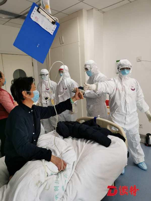 深圳醫(yī)療隊員與患者合影,互相鼓勵。