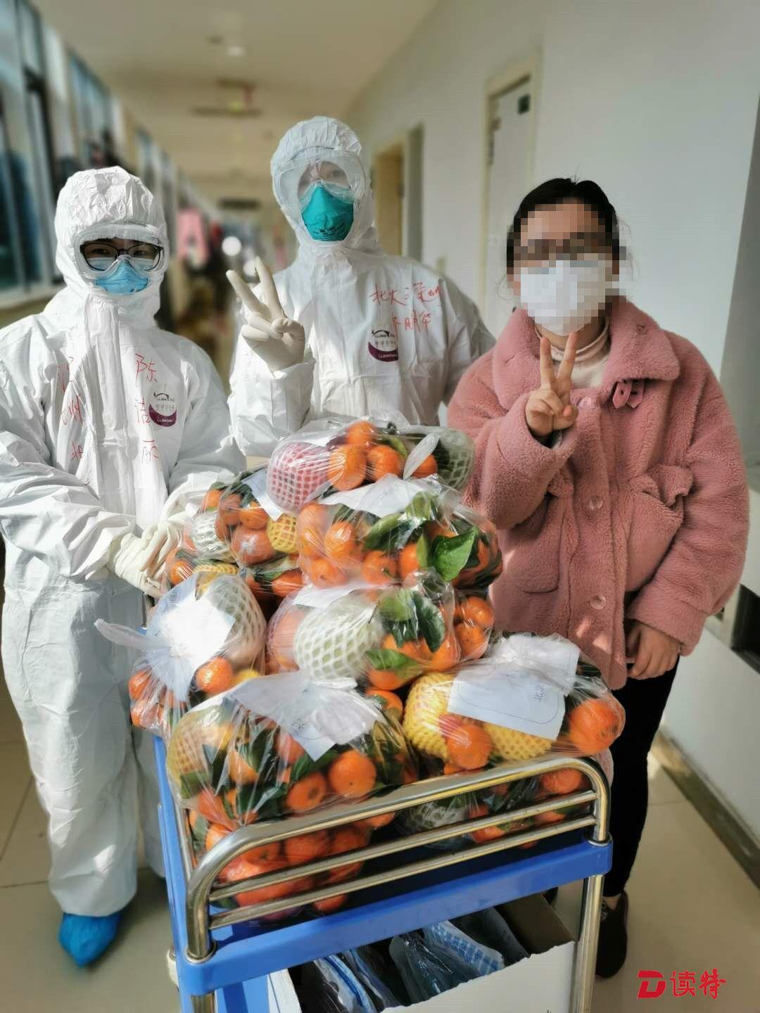 深圳醫(yī)療隊員為患者發(fā)放沙糖桔與蘋果。水果也是從廣東遠(yuǎn)道而來,是廣東愛心人士捐給深圳醫(yī)療隊的,隊員們分享給患者朋友。