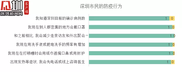 2020年2月9日-11日,深圳疾病預(yù)防控制中心聯(lián)合深圳大學(xué)傳播學(xué)院開展了《深圳市民新冠肺炎調(diào)查》。在三天時(shí)間內(nèi)共回收到8179份有效答卷。結(jié)果顯示,深圳市民對(duì)于新冠肺炎知識(shí)的了解程度達(dá)到了較高水平。近8成受訪市民對(duì)疫情發(fā)展持積極態(tài)度,超9成受訪市民能做好自我防護(hù),對(duì)于病原、疾病的典型癥狀、傳染源特征、洗手的有效預(yù)防性,以及高危人群特征也均超過了95%。