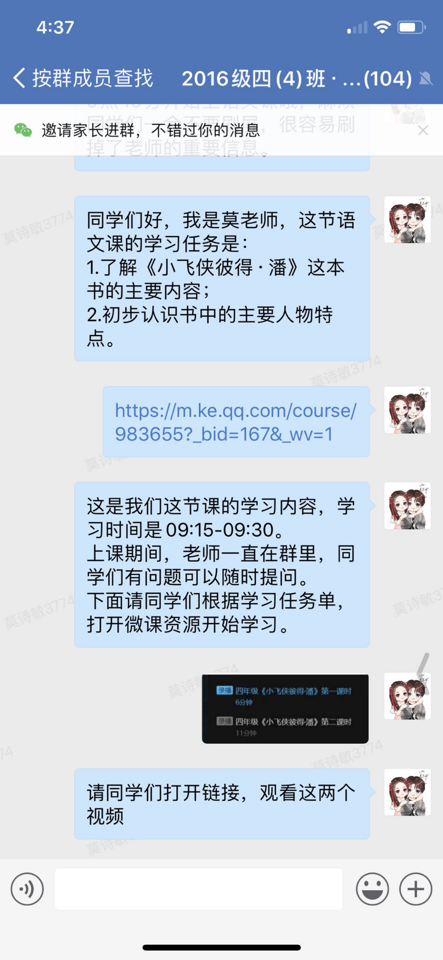 “學??紤]到老教師較多,‘龍華云?!系尿v訊課堂操作比較難把握,最終選擇了在微信上開課?!鄙险n前,莫詩敏會先列一個任務單,讓學生明確學習目標,然后再將提前錄制好的微課發(fā)到班級群里供學生自行觀看。學生聽課時,她全程在線回答學生的提問。每節(jié)課,她都會布置小作業(yè),并預留出時間給學生完成,晚上8點半再在線上講解。