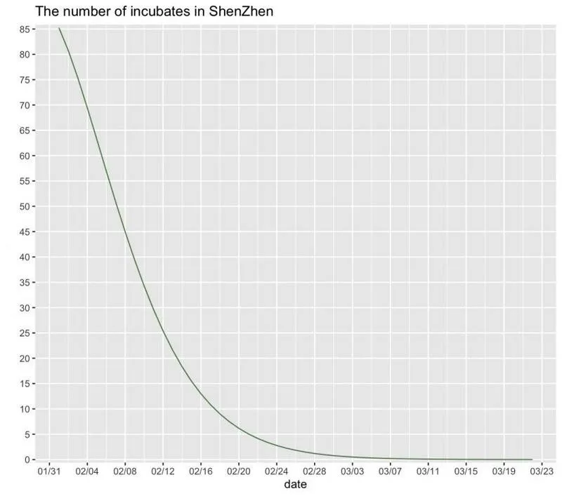 而通過模擬深圳新冠肺炎每日的潛伏者數(shù)量可以看出,2月份以來每日的潛伏者數(shù)量在持續(xù)下降,2月18日已降至個位數(shù),到3月初時潛伏者將基本清零。說明在一系列的防控措施下將病毒傳染的途徑嚴(yán)格控制,很好地防止了病毒的擴(kuò)散。