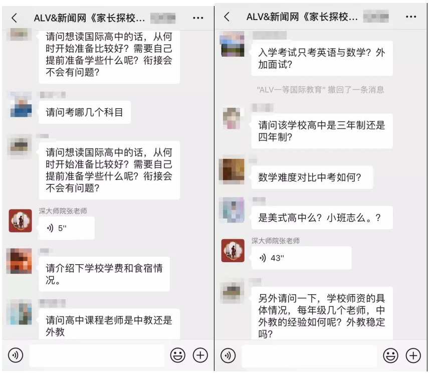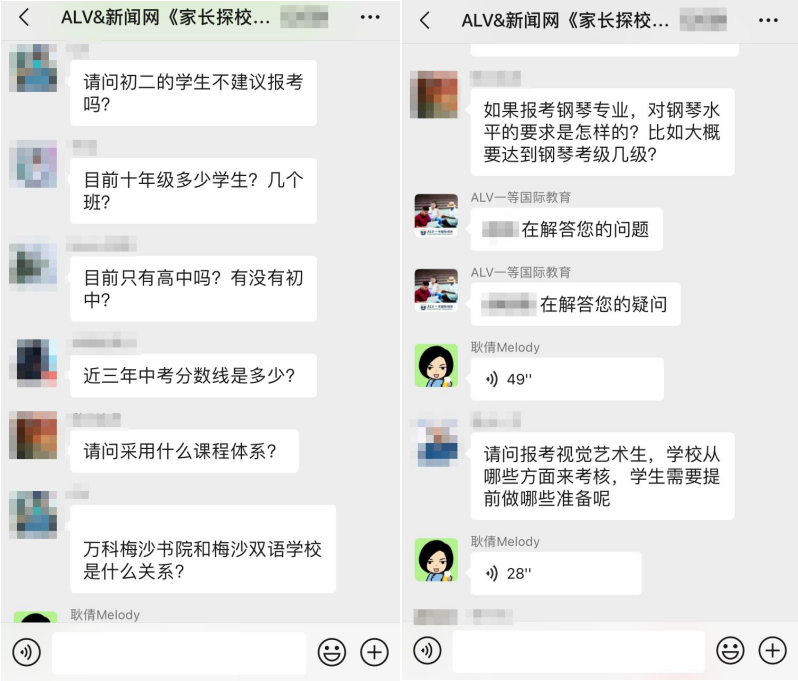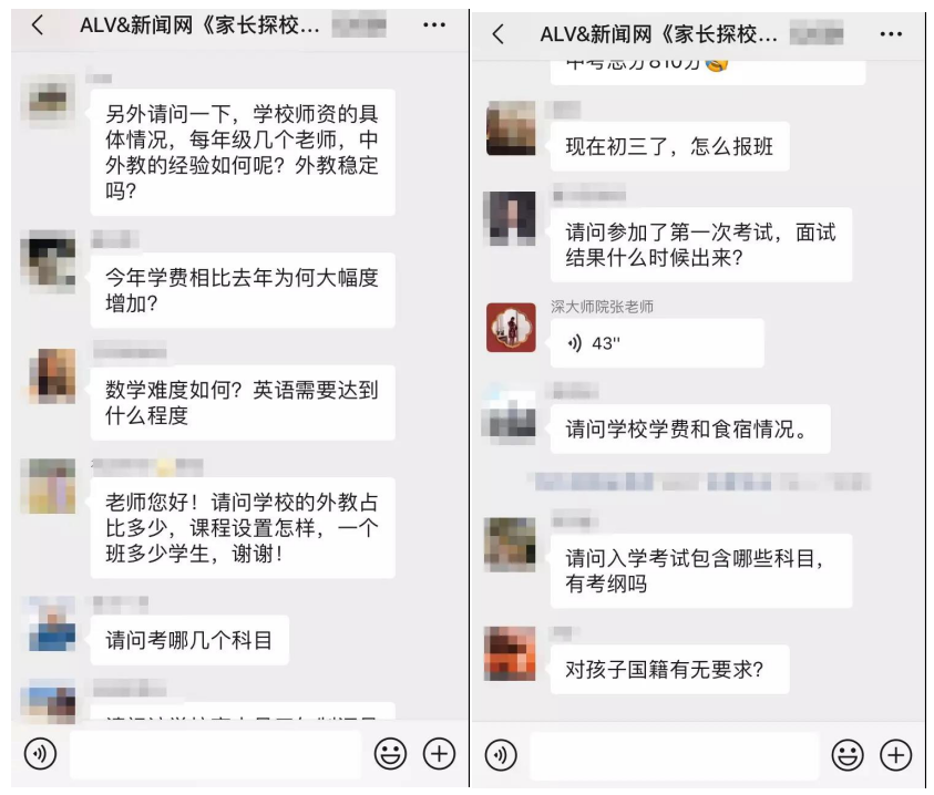 據介紹,在這三場探?;顒又?,招生官耐心而又細致的逐一為家長答疑解惑,贏得家長對本次活動的高度認可。以下為“家長探校團”微信群內互動截圖: