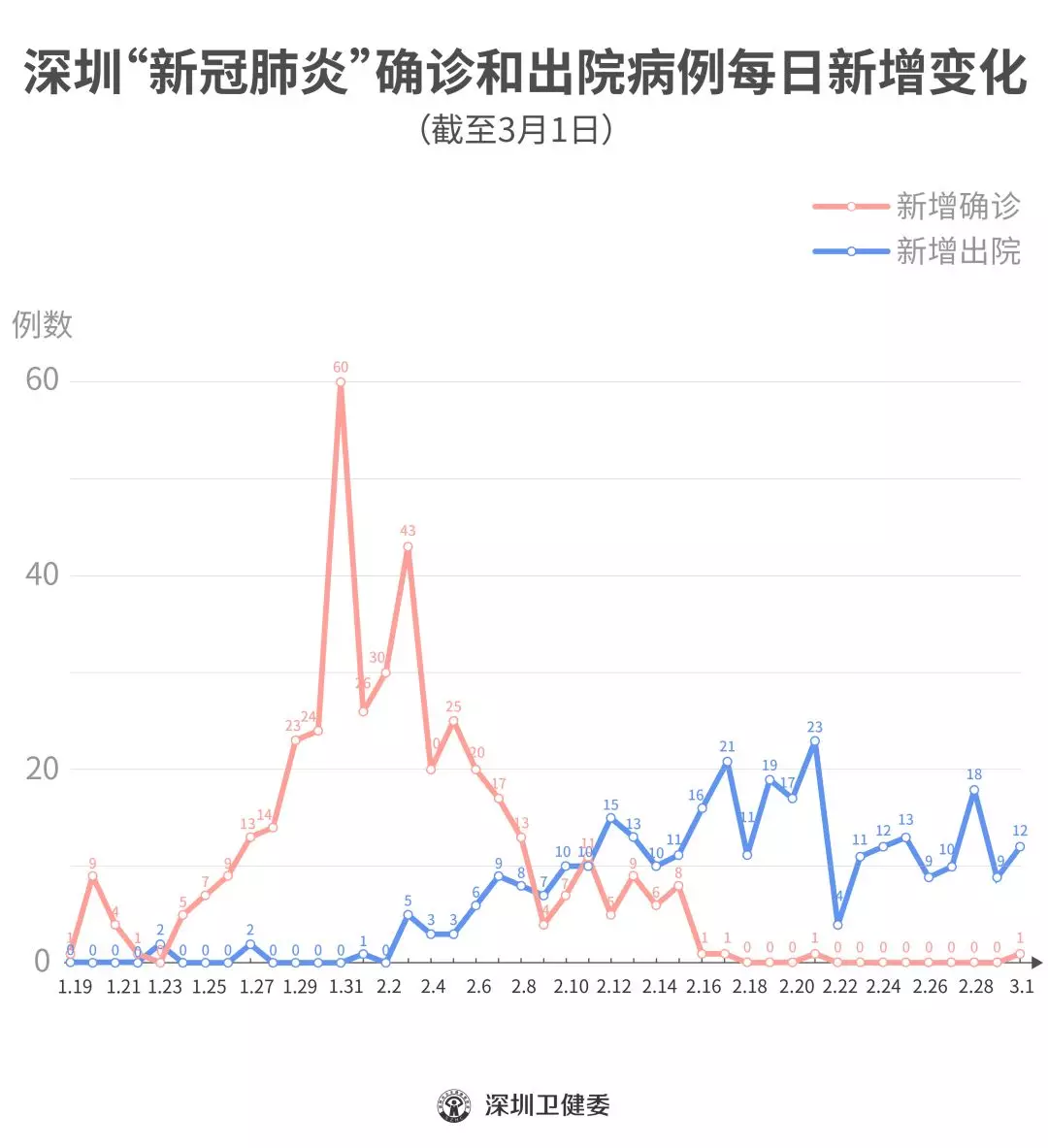 截至3月1日24時,深圳累計報告“新冠肺炎”確診病例418例。3月1日當(dāng)天全市新增確診病例1例,當(dāng)天出院病例12例(從2月26日起不再公布出院個案)。 ▲新增出院病例已超過新增確診病例 累計報告確診病例中,男性198例、女性220例。 按照病例管理地區(qū)劃分,南山區(qū)87例、福田區(qū)82例、龍崗區(qū)71例、寶安區(qū)62例、龍華區(qū)34例、羅湖區(qū)32例、光明區(qū)11例、坪山區(qū)7例、鹽田區(qū)6例、大鵬新區(qū)2例、其他(指由機(jī)場、車站、碼頭、關(guān)口、路卡等直接送往定點醫(yī)院的)24例。 目前,重癥6例、危重癥2例,死亡3例,累計出院320例。 95例確診病例均在深圳市第三人民醫(yī)院隔離治療。 103密切接觸者正在接受醫(yī)學(xué)觀察。 資料來源:深圳市疾控中心、深圳市衛(wèi)健委、廣東省衛(wèi)健委