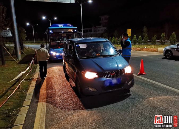 龍崗區(qū)橫崗街道紅棉社區(qū)工作站黨支部黨員歐華生在卡點(diǎn)執(zhí)勤。