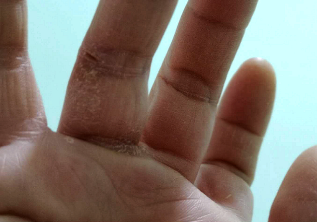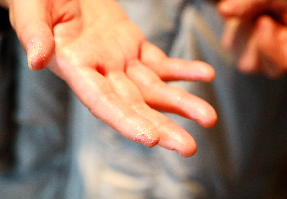 由于長(zhǎng)期近距離接觸患者,徐平每天不得不頻繁洗手、高頻率使用醫(yī)用酒精進(jìn)行手部消毒。這樣做的結(jié)果,就是手部皮膚干燥粗糙、皸裂。但她沒(méi)有辦法讓自己停下來(lái),只要疫情還沒(méi)有結(jié)束,她就不可能停下來(lái)。