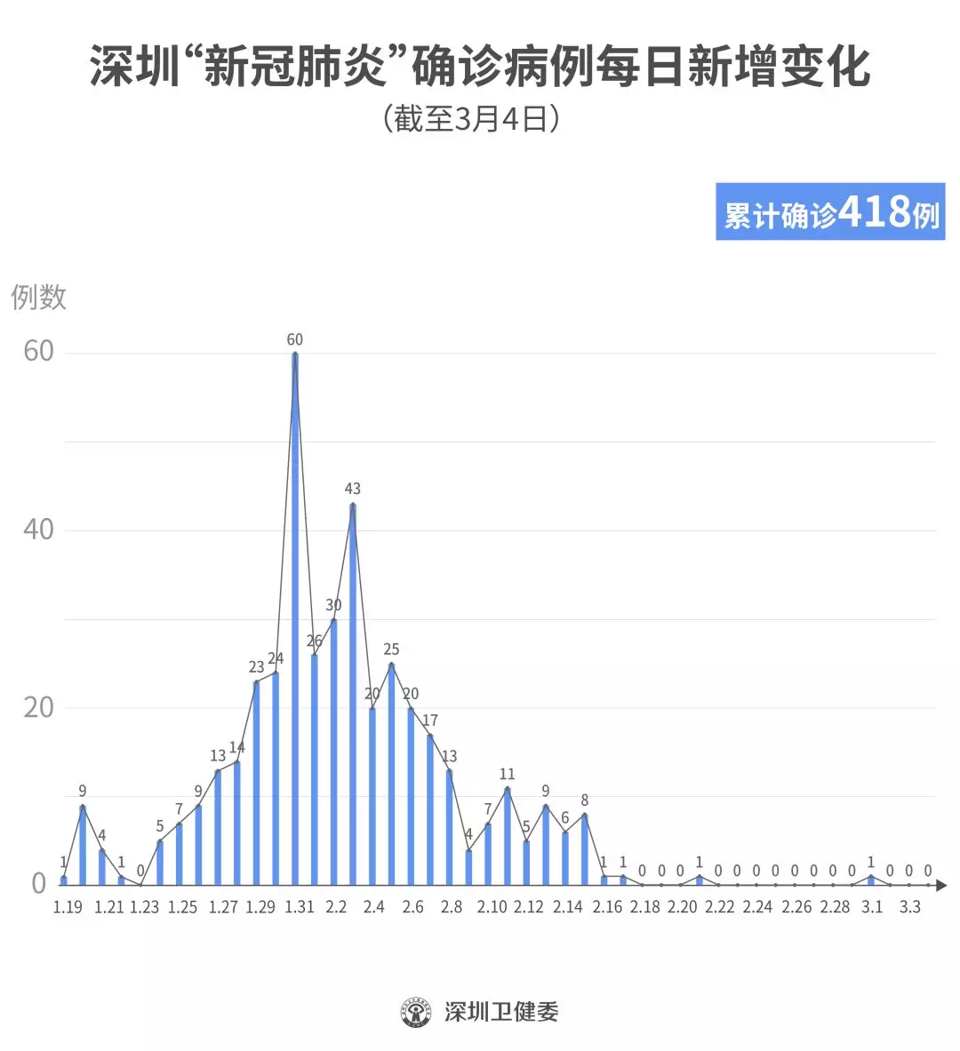 見圳客戶端·深圳新聞網(wǎng)2020年3月5日訊 截至3月4日24時(shí),深圳累計(jì)報(bào)告“新冠肺炎”確診病例418例。3月4日當(dāng)天全市無新增確診病例,當(dāng)天出院病例9例(從2月26日起不再公布出院個(gè)案)。