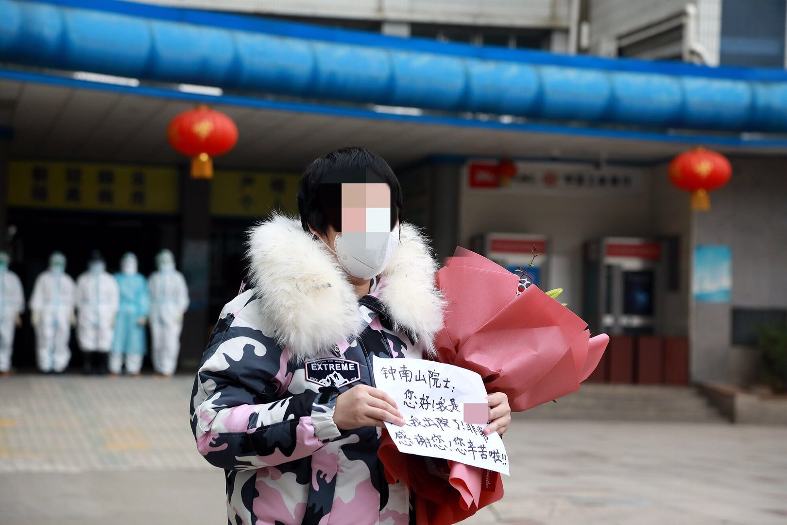 3月6日上午11點(diǎn)多,荊州市第一人民醫(yī)院新冠肺炎隔離病房大樓外,多家媒體記者和當(dāng)?shù)蒯t(yī)護(hù)人員站在安全線外,遙望著大門的方向。該院主管護(hù)理工作的副院長(zhǎng)段昌奉還特地帶來(lái)了一束鮮花,準(zhǔn)備歡迎張冬雪平安回家。