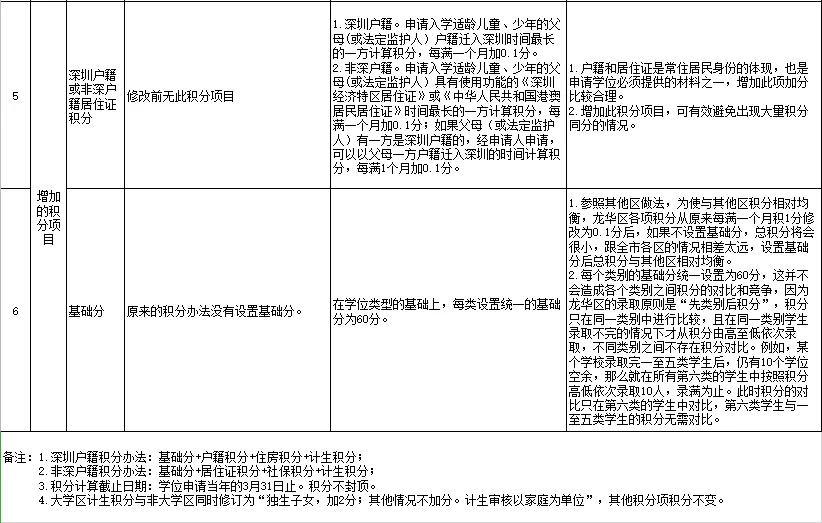 劃重點:政策內(nèi)或全面二孩擬不再加分,獨生子女加2分;深圳戶籍自購商品房產(chǎn)擬改為以房產(chǎn)購買日期計算積分;非深戶籍擬按照養(yǎng)老保險和醫(yī)療保險兩種險種同時繳納的時間計算積分;新增深圳戶籍或非深戶籍居住證積分;新增基礎分60分。