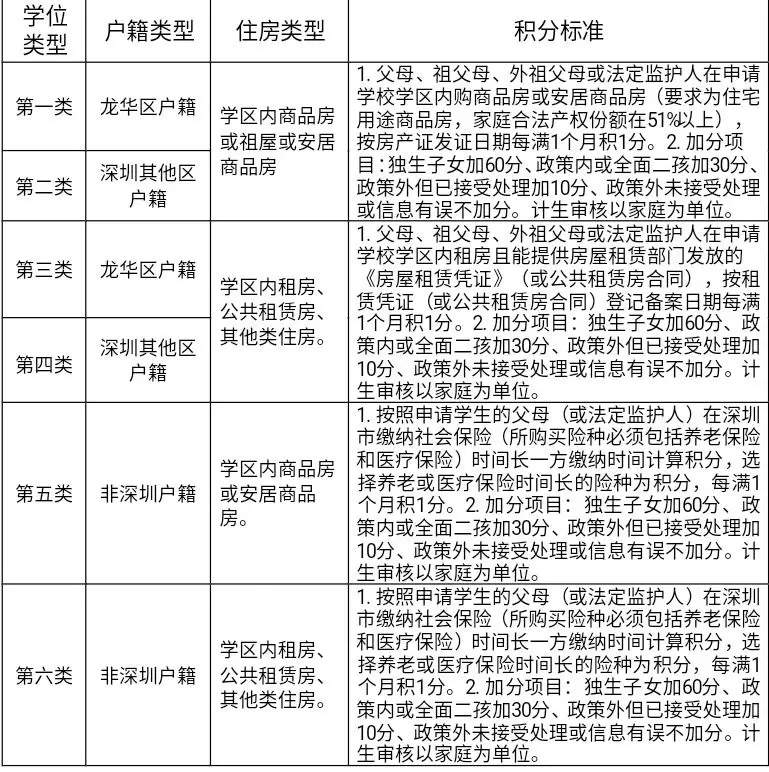 第六類:非深戶籍,學區(qū)內(nèi)租房或公共租賃房或其他類住房。