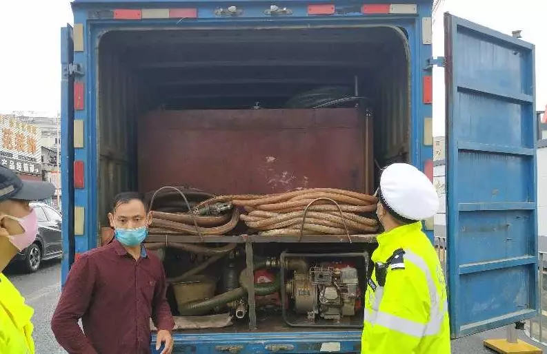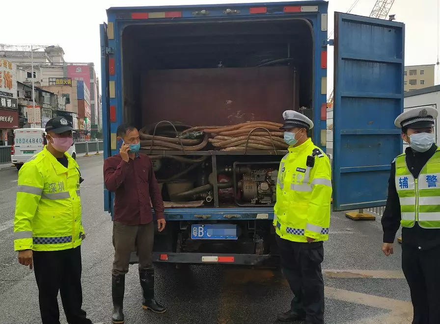 3月9日上午,深圳交警在坪山深汕路六合城路段對過往貨車進行綠碼申報宣傳,一輛粵B號牌輕型廂式貨車引起現(xiàn)場民警注意,執(zhí)勤民警第一時間上前將該車攔至一旁進行調查。