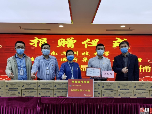見圳客戶端·深圳新聞網(wǎng)訊(記者 王志明)3月12日,在南山區(qū)委組織部協(xié)調(diào)下,南方科技大學(xué)人力資源部(組織統(tǒng)戰(zhàn)部)副部長許濤一行來到南山區(qū)醫(yī)療集團總部,為一線醫(yī)務(wù)人員捐贈了南方科技大學(xué)自主研發(fā)的防霧酒精濕巾240桶。捐贈儀式在南山區(qū)醫(yī)療集團總部舉行,區(qū)衛(wèi)生健康局黨組成員、區(qū)醫(yī)療集團總部黨委書記陳淵青,區(qū)衛(wèi)生健康局副局長胡亦農(nóng)等出席儀式。黨委書記陳淵青代表集團總部向南方科技大學(xué)送出感謝信和捐贈證書。