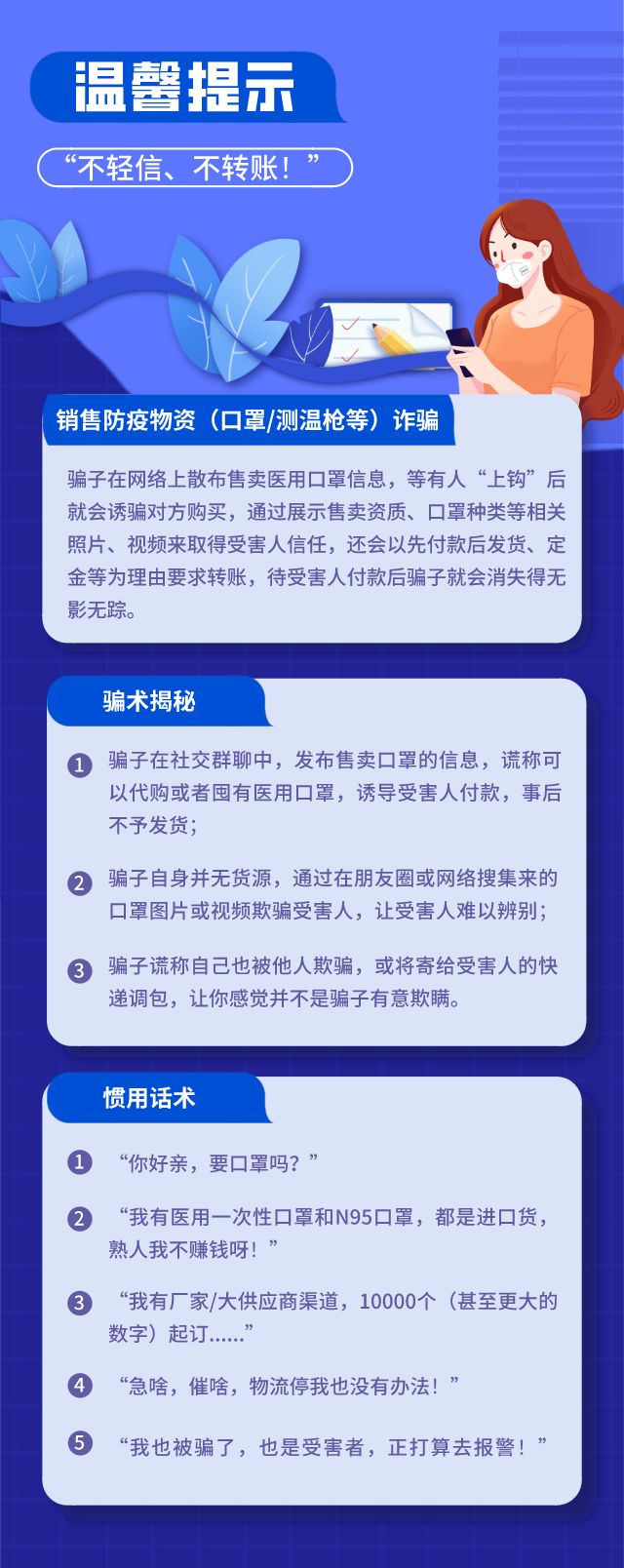“我來(lái)報(bào)警!群里有人騙我口罩錢(qián)!” 3月4日,事主李小姐匆匆來(lái)到深圳市公安局福田分局香蜜湖派出所報(bào)案并講述了自己被騙的經(jīng)過(guò)。 此前李小姐在某社區(qū)賣(mài)菜群里,看到了一名群友發(fā)布“口罩資源”的信息,于是加其為好友,對(duì)方向李小姐展示了售賣(mài)資質(zhì)以及售賣(mài)口罩的樣品,一步步讓李小姐放松了警惕,雙方以1.75元/個(gè)醫(yī)用口罩、9元/個(gè)N94口罩的價(jià)格談妥交易。 隨后李小姐通過(guò)轉(zhuǎn)賬先向?qū)Ψ劫?gòu)買(mǎi)了一批口罩。李小姐覺(jué)得對(duì)方還挺靠譜的,就又分四次向?qū)Ψ睫D(zhuǎn)賬,分別郵寄給自己不同的朋友,累計(jì)向?qū)Ψ睫D(zhuǎn)賬了990元。 不料所有的錢(qián)轉(zhuǎn)過(guò)去之后,這個(gè)群友卻消失了,發(fā)信息不回,打視頻不接,雖未拉黑但也沒(méi)任何回應(yīng)?!笆謿馊?,被騙的錢(qián)雖然不多,但是一定要給詐騙分子嚴(yán)懲!”李小姐對(duì)民警這樣講述道。 民生小案無(wú)小事,數(shù)百元現(xiàn)金被騙,電單車(chē)被盜……這些看似平常的一件件“小”案,背后牽連的卻是廣大群眾的幸福感、安全感。 香蜜湖派出所民警聚力破小案,服務(wù)大民生,做到有案必偵,快偵快破。經(jīng)多方面調(diào)查后,最終確定了嫌疑人的身份——游某。3月9日11時(shí)許,福田警方將嫌疑人游某抓獲。 ▲嫌疑人通過(guò)網(wǎng)絡(luò)發(fā)布虛假信息進(jìn)行詐騙 據(jù)了解,游某于2019年下半年來(lái)到深圳,此前加入了一個(gè)社區(qū)賣(mài)菜群。不久前,游某因手頭緊,于是就在群里發(fā)布消息,謊稱自己有大量口罩待出售。 游某在群里發(fā)布買(mǎi)賣(mài)“口罩”信息,會(huì)不會(huì)還有其他的受害者?這是民警第一時(shí)間的直覺(jué)。隨著調(diào)查的深入,民警發(fā)現(xiàn)還有其他受害者與游某聯(lián)系購(gòu)買(mǎi)“口罩”及多筆手機(jī)轉(zhuǎn)賬記錄,金額雖然不大,大多為80元、100元、115元、175元……各個(gè)個(gè)案的涉案金額看起來(lái)都是“小錢(qián)”,但我們的民警還是盡心盡力,絲毫沒(méi)有放松,一項(xiàng)項(xiàng)認(rèn)真核實(shí)并一一做好記錄。 據(jù)初步統(tǒng)計(jì),從1月30日至今,游某通過(guò)向他人售賣(mài)口罩實(shí)施詐騙,累計(jì)詐騙4000余元,被騙的受害人多達(dá)16人! ▲民警抓獲嫌疑人 現(xiàn)游某對(duì)利用網(wǎng)絡(luò)實(shí)施口罩詐騙的行為供認(rèn)不諱,已被警方依法刑事拘留,在香蜜湖派出所民警的聯(lián)系下,目前已有受害群友相繼前來(lái)協(xié)助調(diào)查,案件仍在進(jìn)一步調(diào)查中。 ▲民警審訊嫌疑人 警言警語(yǔ) 香蜜湖派出所 民警鄭卓 疫情期間,不少企業(yè)和個(gè)人紛紛采購(gòu)口罩等防護(hù)用品。針對(duì)利用口罩等防疫物資實(shí)施詐騙等違法犯罪行為的不法分子,福田警方堅(jiān)決從嚴(yán)從快依法打擊。廣大市民謹(jǐn)記,購(gòu)買(mǎi)口罩、消毒液等防疫物資,要通過(guò)正規(guī)途徑,做到“不輕信、不轉(zhuǎn)賬”,避免上當(dāng)受騙。