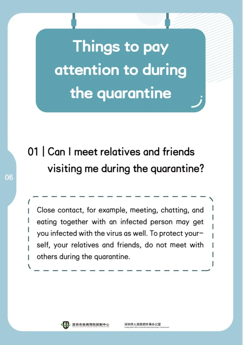 因此,為了您和家人健康,從疫情高發(fā)重點(diǎn)地區(qū)來深返深后,應(yīng)當(dāng)進(jìn)行14天居家隔離,以確認(rèn)沒有感染病毒。在這非常時(shí)期,做好居家隔離既是對(duì)您自己和家人最好的保護(hù),也是為疫情早日結(jié)束做貢獻(xiàn)。