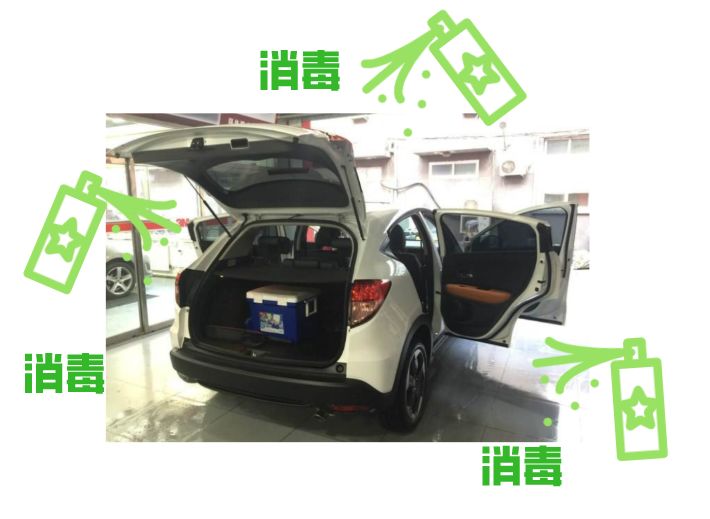 車內(nèi):車內(nèi)坐墊/地毯進行噴灑消毒;儀表板按鍵,方向盤,車門內(nèi)開把手及車門護板按鍵,引擎蓋及加油蓋拉手、中央扶手,排擋桿及換擋面板等部位采用酒精棉片或蘸酒精的紗布進行擦拭消毒,留存記錄。
