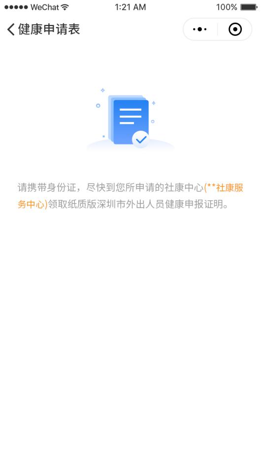 完成提交后,市民須攜帶手機(jī)和身份證,在工作時間前往選擇的社康中心預(yù)檢分診臺,展示行蹤自查行程卡、“深i您健康碼”,其中行蹤自查行程卡可在預(yù)檢分診臺掃描二維碼查詢。此外,在測量體溫并檢查有無發(fā)熱、咳嗽等呼吸道癥狀后,便可開具加蓋社康機(jī)構(gòu)公章的《深圳市外出人員健康申報證明》。