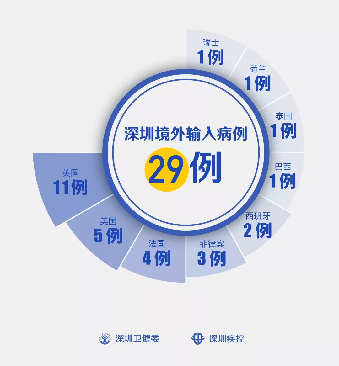 3月27日,深圳確診2例境外輸入“新冠肺炎”新病例,累計(jì)達(dá)29例。 病例28 男,32歲,中國(guó)籍,由巴西返回。3月21日從巴西圣保羅乘坐TK194航班飛往土耳其伊斯坦布爾,23日從土耳其伊斯坦布爾乘坐TK070航班飛往中國(guó)香港,24日從香港乘坐9C8922航班飛往上海,經(jīng)浦東機(jī)場(chǎng)入境,入境時(shí)體溫正常。25日從上海乘坐航班CA1893抵達(dá)深圳后,由專車送往隔離觀察。26日患者自感發(fā)熱,水銀溫度計(jì)自測(cè)體溫37.7℃,隨后由120救護(hù)車送醫(yī),當(dāng)天新冠病毒核酸初篩陽(yáng)性,深圳市疾控中心復(fù)核亦為陽(yáng)性。27日經(jīng)專家會(huì)診,臨床診斷為新冠病毒肺炎。 目前患者已轉(zhuǎn)到深圳市第三人民醫(yī)院隔離治療。初步判定,中國(guó)內(nèi)地密接者3名,已隔離觀察。 病例29 女,51歲,美國(guó)籍,由美國(guó)返回深圳工作。3月21日從美國(guó)紐約乘坐B(niǎo)R0031航班飛往中國(guó)臺(tái)北,22日從臺(tái)北乘坐CA196航班飛往上海,經(jīng)浦東機(jī)場(chǎng)入境,入境體溫36.4℃。23日從上海乘坐CA1893航班抵達(dá)深圳后,由專車送往隔離觀察。26日新冠病毒核酸初篩陽(yáng)性,當(dāng)天深圳市疾控中心復(fù)核亦為陽(yáng)性。27日經(jīng)專家會(huì)診,臨床診斷為新冠病毒肺炎。 目前患者已轉(zhuǎn)到深圳市第三人民醫(yī)院隔離治療。初步判定,中國(guó)內(nèi)地密接者1名,已隔離觀察。 截至3月27日24時(shí),深圳累計(jì)報(bào)告“新冠肺炎”病例446例。3月27日當(dāng)天新增2例。 累計(jì)報(bào)告確診病例中,男性217例、女性229例。 目前,死亡3例,累計(jì)出院416例。 27例確診病例均在深圳市第三人民醫(yī)院隔離治療。 391名密切接觸者正在接受醫(yī)學(xué)觀察。 資料來(lái)源:深圳市疾控中心、深圳市衛(wèi)健委、廣東省衛(wèi)健委
