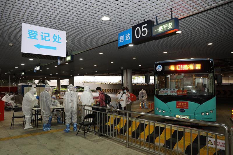經過升級改造后,分撥轉運點由原5個巴士車位增加至15個巴士車位,其中1號至7號巴士站臺為入境旅客下車點,8號至15號巴士站臺為入境旅客登車點,實現(xiàn)出入分道。新增座位600個,同時拓寬登記區(qū)域面積,為旅客排隊、工作人員登記信息提供了更為寬敞的空間和更為明確的指引。