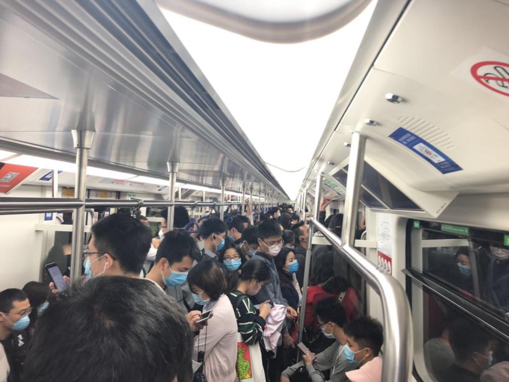 ▲地鐵4號(hào)線早高峰相對(duì)擁擠。