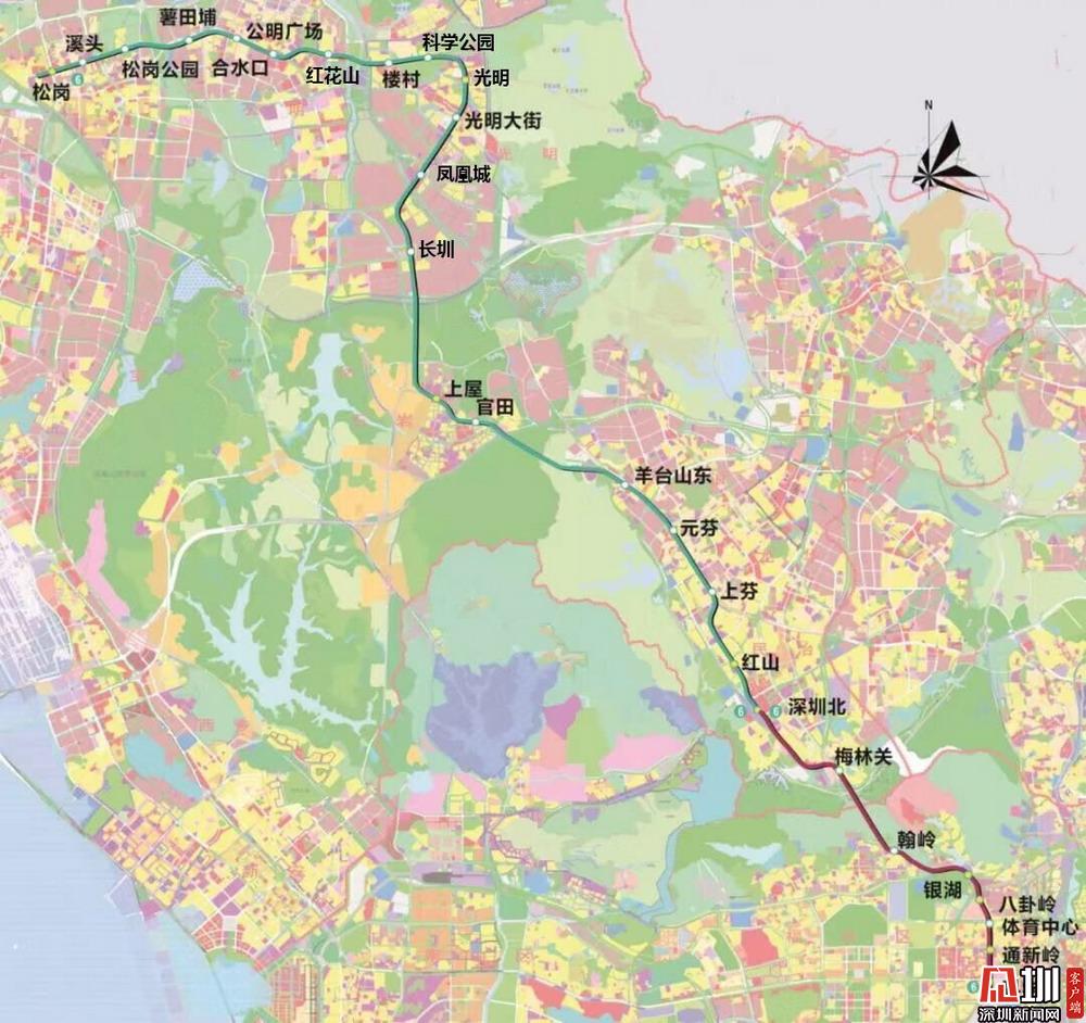 地鐵6號線線路起于松崗站,途經(jīng)寶安區(qū)、光明區(qū)、龍華區(qū)、福田區(qū)、羅湖區(qū),止于科學(xué)館站,大致呈“7形”走向,6號線一二期總長49.396公里,共設(shè)27座車站,全程用時66分鐘。線路建成后,將帶動光明區(qū)和龍華區(qū)發(fā)展、促進城市空間結(jié)構(gòu)完善,進一步加強與東莞、香港城市軌道交通之間的溝通聯(lián)系,同時有效緩解深圳北站換乘壓力,加速特區(qū)經(jīng)濟一體化進程。