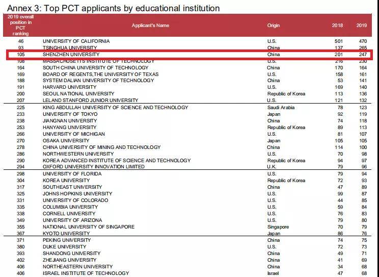 見圳客戶端·深圳新聞網(wǎng)2020年4月8日訊(見圳客戶端、深圳新聞網(wǎng)記者金洪竹)4月7日,世界知識產(chǎn)權(quán)組織(WIPO)官方網(wǎng)站公布2019年國際專利申請情況。中國首次超越美國,成為通過WIPO提交國際專利申請(PCT)的最大來源國。在全球PCT申請教育機(jī)構(gòu)中,深圳大學(xué)以247件專利數(shù)量再次位列全球第3,僅次于加州大學(xué)系統(tǒng)和清華大學(xué)。