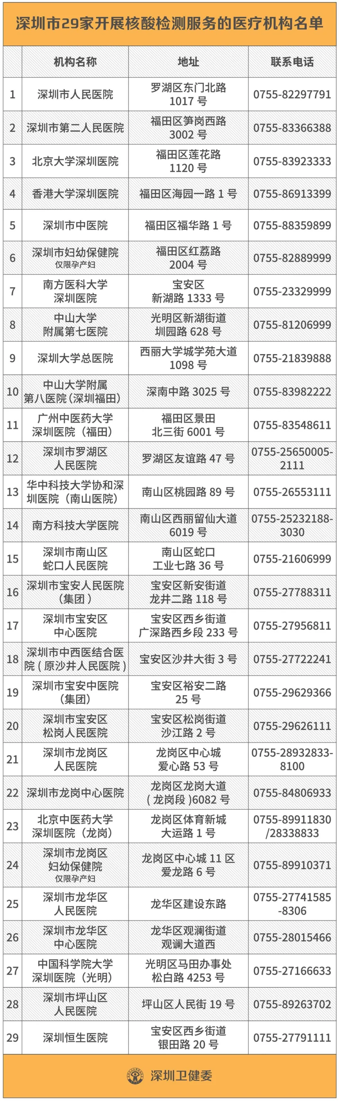 目前,深圳已有29家醫(yī)院面向公眾提供新冠病毒核酸檢測(cè)服務(wù)。