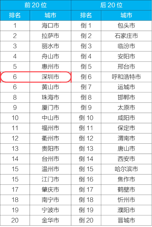 1-3月,168個重點城市中包頭、石家莊、臨汾市等城市空氣質量相對較差(從倒數(shù)第1名至倒數(shù)第20名);??凇⒗_、麗水市等城市空氣質量相對較好,深圳排名第6。