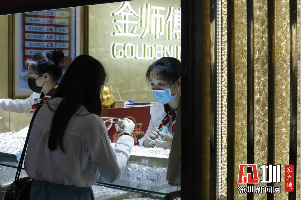 東門步行街的手機(jī)配件門店前,兩位市民正在選購。