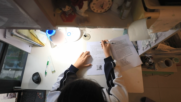 對(duì)于這次高考,程靈鈞并不焦慮:“高考本質(zhì)上是對(duì)考生運(yùn)用知識(shí)能力的考查,沒有必要把它當(dāng)作特殊的考試對(duì)待,平常心就好?!边@也得益于她早在高二上學(xué)期就平穩(wěn)度過了因分班帶來的“焦慮期”,盡管這花了差不多一整個(gè)學(xué)期,但此后她心態(tài)就非?!胺€(wěn)”,幫助她度過了這段在家學(xué)習(xí)的時(shí)光?!胺敌:笪視?huì)盡量去適應(yīng),讓心態(tài)保持平和,安心度過在校備考的階段,自然而然地去面對(duì)高考?!彼f。